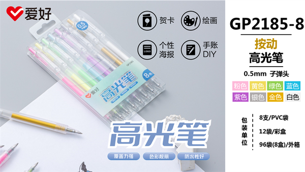 Bộ Bút nhũ AIHAO ngòi 0.5mm 8 màu GP2185 (12/96)