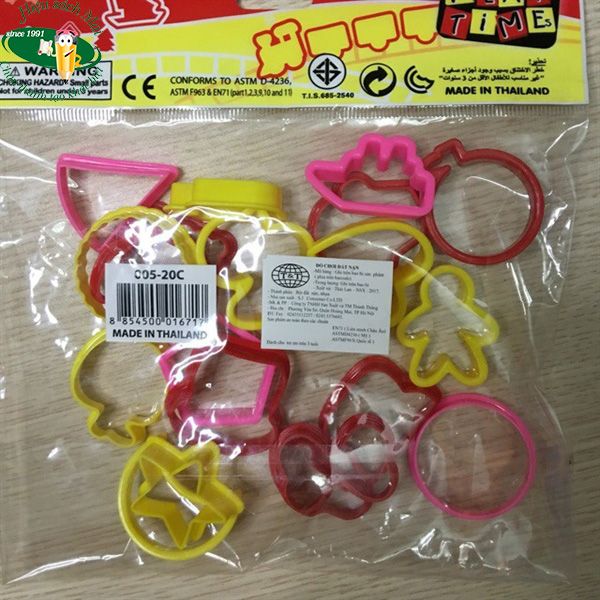 - Bộ 20 khuôn sử dụng tạo hình đất lặn cho các bé có thể nặn các hình kiểu dễ dàng đa dạng hơnThành phần: Nhựa.