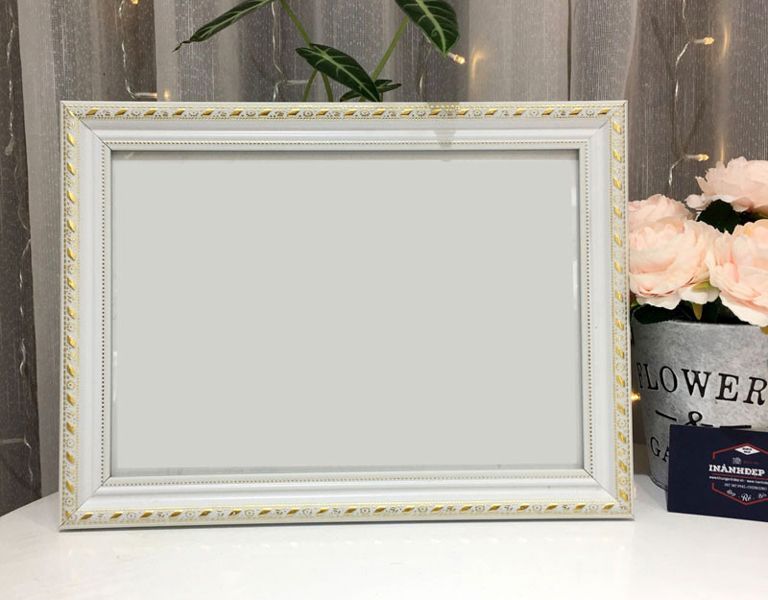 Khung giấy khen (loại đẹp)(26X36) - Viền vàng gỗ trắng khổ B4