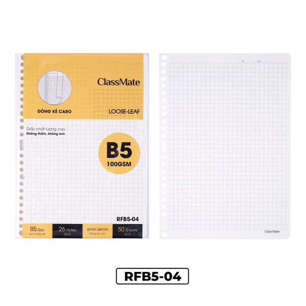 Ruột sổ còng Caro nét đứt ClassMate 20 lỗ B5 DL100gsm (50 tờ/túi) RFB5-04(1/80)