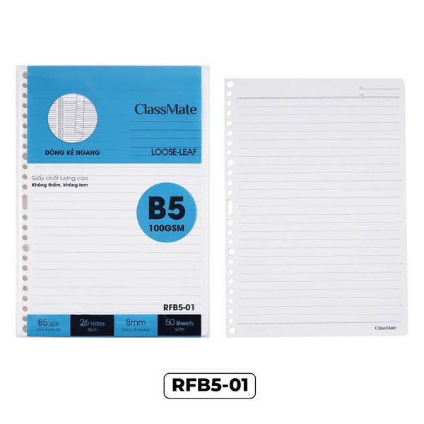 Ruột sổ còng kẻ ngang ClassMate 20 lỗ B5 DL100gsm (50 tờ/túi) RFB5-01(1/80)